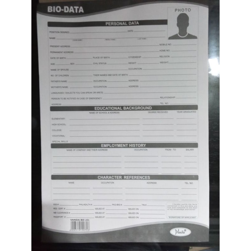 In bio data english the focus is on personal details like date of birth, gender, religion, race, nationality, residence, marital. There are different types of bio data format. Post app lied fo r Above you will find a bio data form for job document template we suggest you use. Your biodata is your first meeting with your prospective employer, your future collage or university etc.