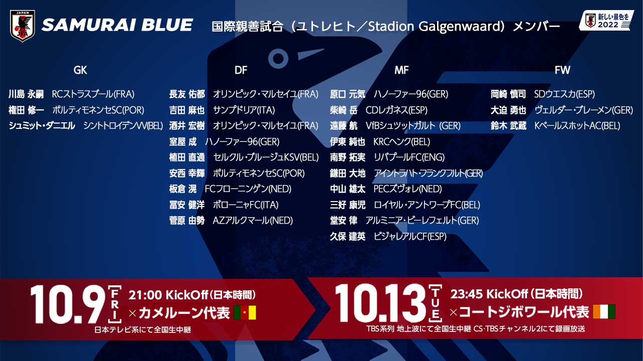 オリンピックサッカー日本代表の多くのメンバーは、 ヨーロッパ組 で 構成 されます。 オリンピック日本代表にとって大事な試合になる南アフリカ戦のテレビ放送時間やスタメン予想・速報、キックオフ時間などをお届けします。 サッカー日本代表 u24. オリンピックサッカー日本代表の多くのメンバーは、 ヨーロッパ組 で 構成 されます。 オリンピック日本代表にとって大事な試合になる南アフリカ戦のテレビ放送時間やスタメン予想・速報、キックオフ時間などをお届けします。